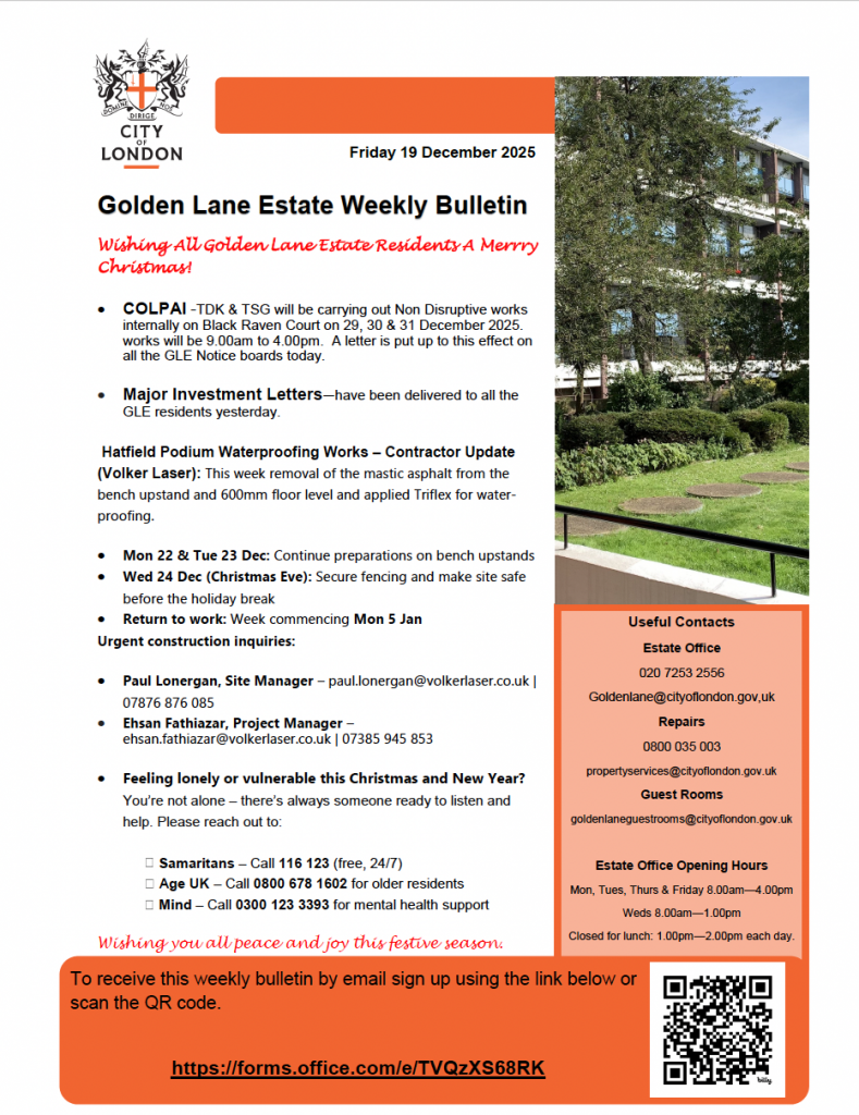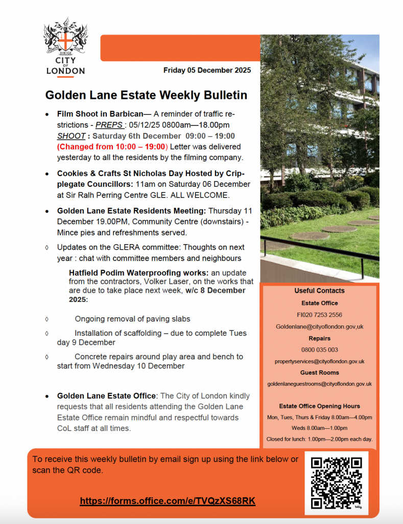 You will find Estate Office weekly bulletins on the noticeboards across the estate. GLERA has asked for an electronic version – scroll through the gallery below.