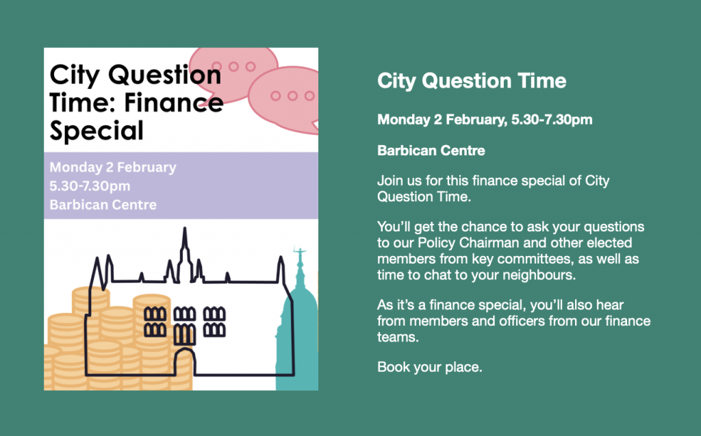 We are delighted to invite City of London residents to a finance special of City Question Time.